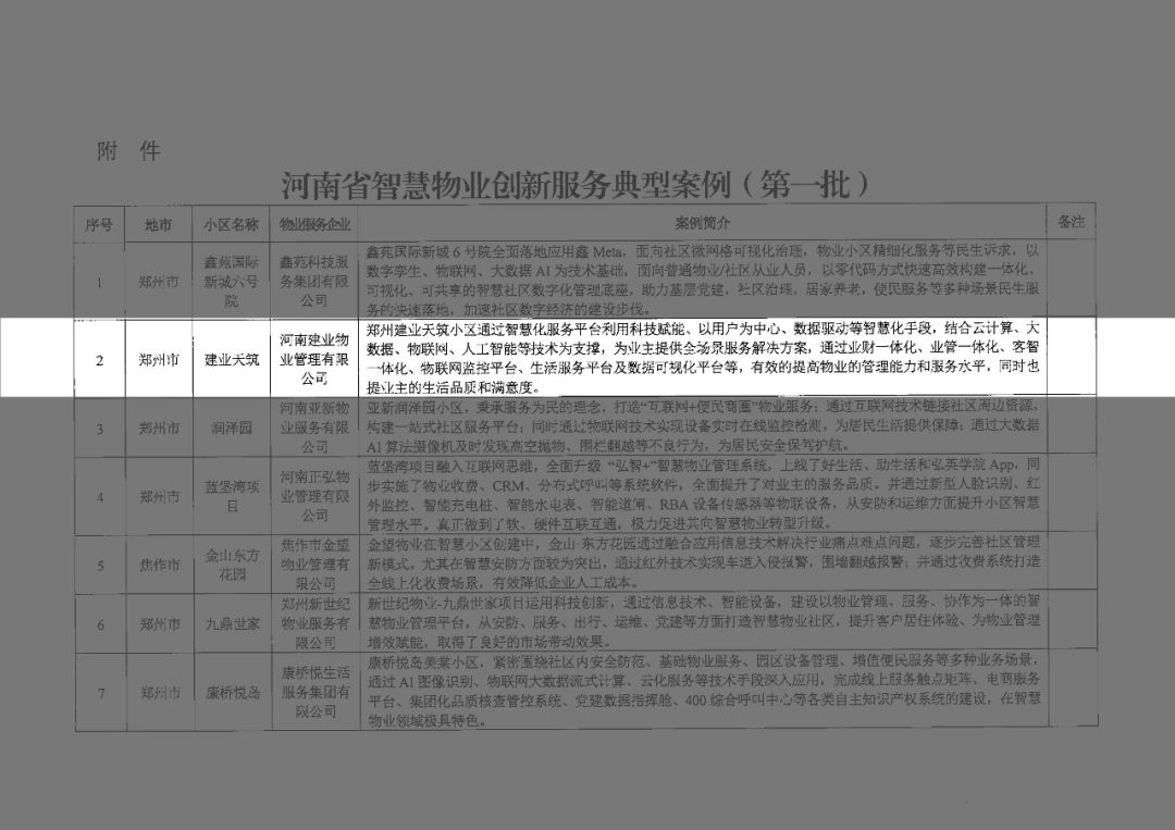 建業(yè)物業(yè)入選河南省首批智慧物業(yè)創(chuàng)新服務(wù)典型案例名單