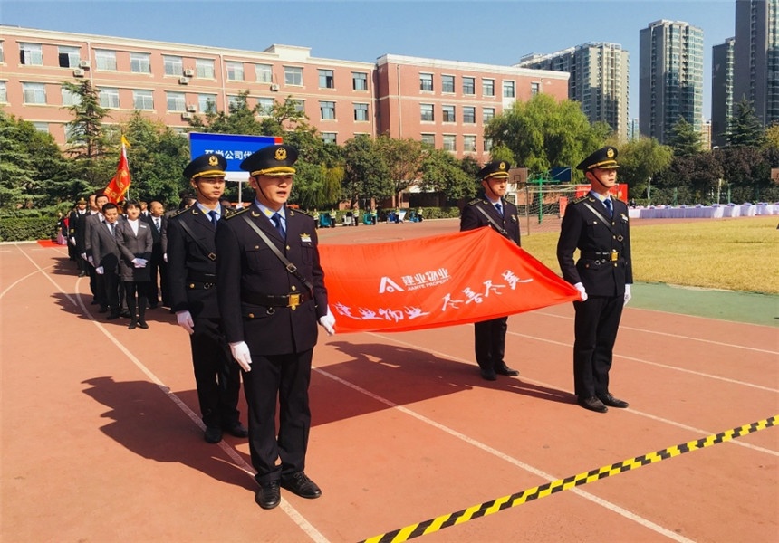 來(lái)自建業(yè)物業(yè)全省各地、經(jīng)過(guò)層層比賽選拔出來(lái)的禮兵、維修和保潔崗位共計(jì)500余名優(yōu)秀員工參加了此次比賽。首先,由許靜總宣布本次大比武活動(dòng)正式開始。入場(chǎng)儀式環(huán)節(jié),鄭州區(qū)域、豫東區(qū)域、豫南區(qū)域、豫西區(qū)域、豫北區(qū)域、至尚物業(yè)及案場(chǎng)服務(wù)部組成代表隊(duì)方陣逐一入場(chǎng),他們口號(hào)嘹亮、目光堅(jiān)定、英姿颯爽,展現(xiàn)出物業(yè)團(tuán)隊(duì)蓬勃向上、拼搏進(jìn)取的良好精神面貌。