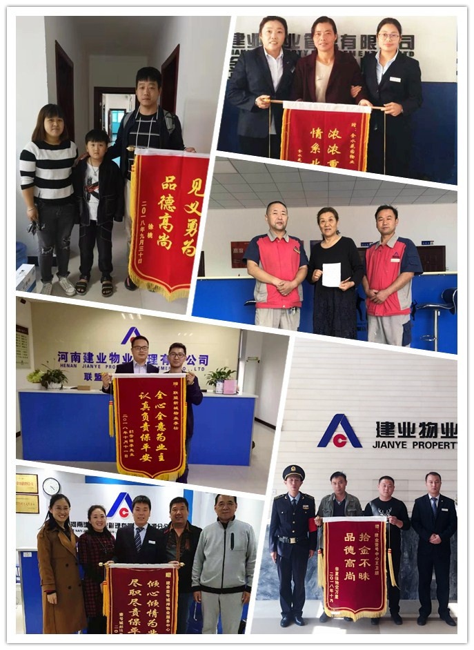 10月18日,濟(jì)源·壹號(hào)城邦的三位君鄰會(huì)業(yè)主為物業(yè)服務(wù)中心送上錦旗一面。業(yè)主表示,建業(yè)物業(yè)壹號(hào)城邦團(tuán)隊(duì)員工素質(zhì)佳、工作積極認(rèn)真,不僅能夠認(rèn)真了解業(yè)主訴求、積極整改,還經(jīng)常幫業(yè)主抬重物、提醒業(yè)主關(guān)閉車(chē)窗、幫健忘的業(yè)主保管電動(dòng)車(chē)鑰匙,并時(shí)常有拾金不昧的事件發(fā)生……