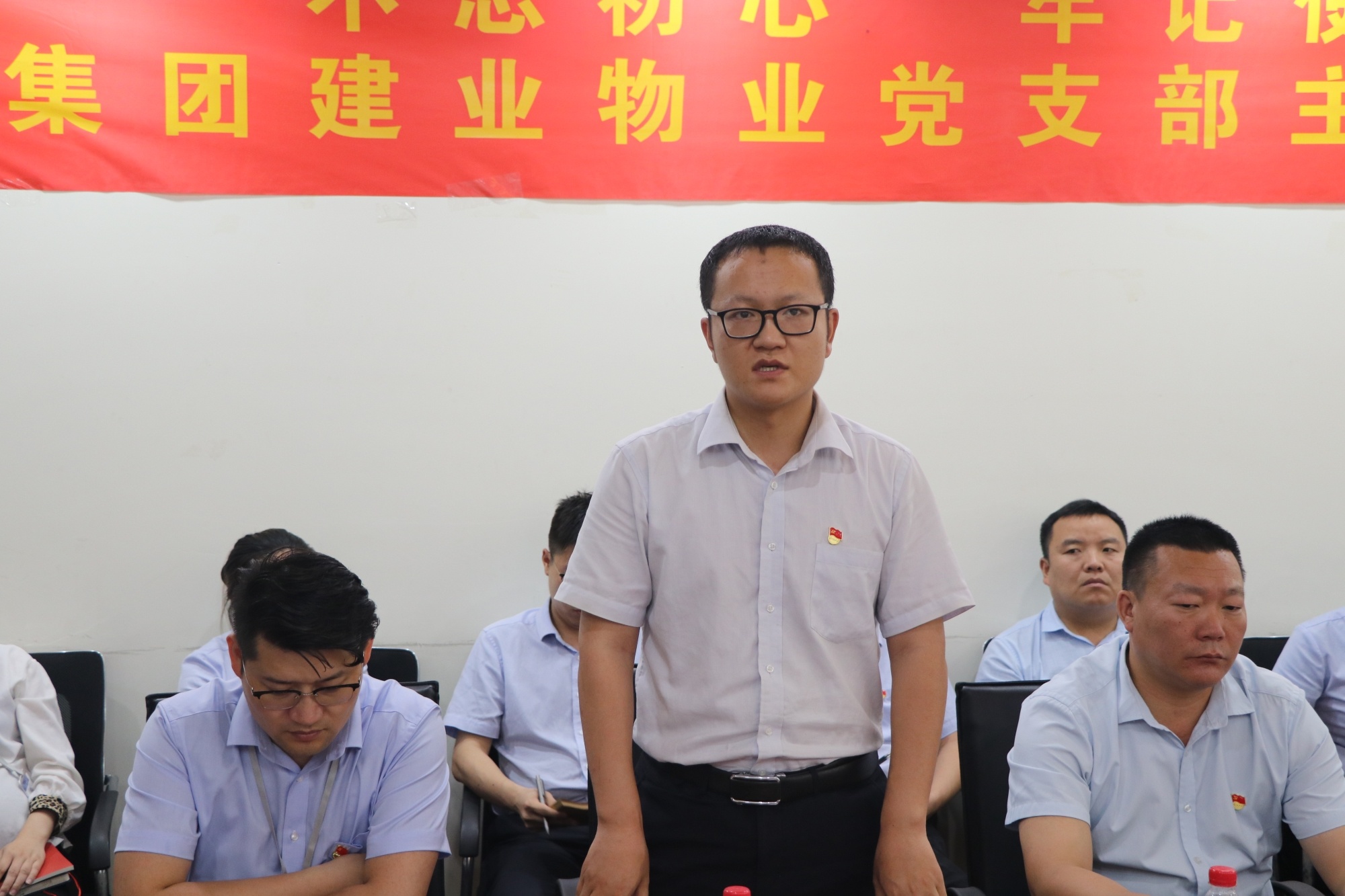 活動(dòng)首先由建業(yè)集團(tuán)建業(yè)物業(yè)黨支部組織委員劉衛(wèi)娟同志對(duì)支部上半年黨建工作作詳細(xì)匯報(bào)。緊接著,支部宣傳委員王宇同志組織大家學(xué)習(xí)中共中央政治局“牢記初心使命,推進(jìn)自我革命”相關(guān)視頻。隨后,建業(yè)物業(yè)入黨積極分子代表李鵬同志、老黨員代表劉德軍同志依次就“不忘初心 牢記使命”這一主題與大家進(jìn)行分享。