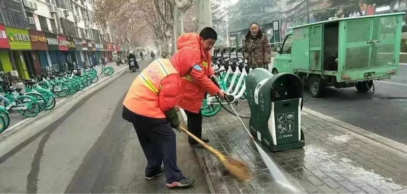 建業(yè)物業(yè)鄭州二七環(huán)衛(wèi)保潔春節(jié)期間每日出動(dòng)各類(lèi)環(huán)衛(wèi)車(chē)輛40余臺(tái),清擦果皮箱380多個(gè),沖刷油污道路50余處,清理落葉3噸左右,沖刷道牙15000多米,清理廣告30處左右,清理衛(wèi)生死角40余處……集中清理、清洗道路,保障城市的潔凈衛(wèi)生,減少細(xì)菌病毒滋生,為防止疫情的發(fā)生貢獻(xiàn)自己的力量。