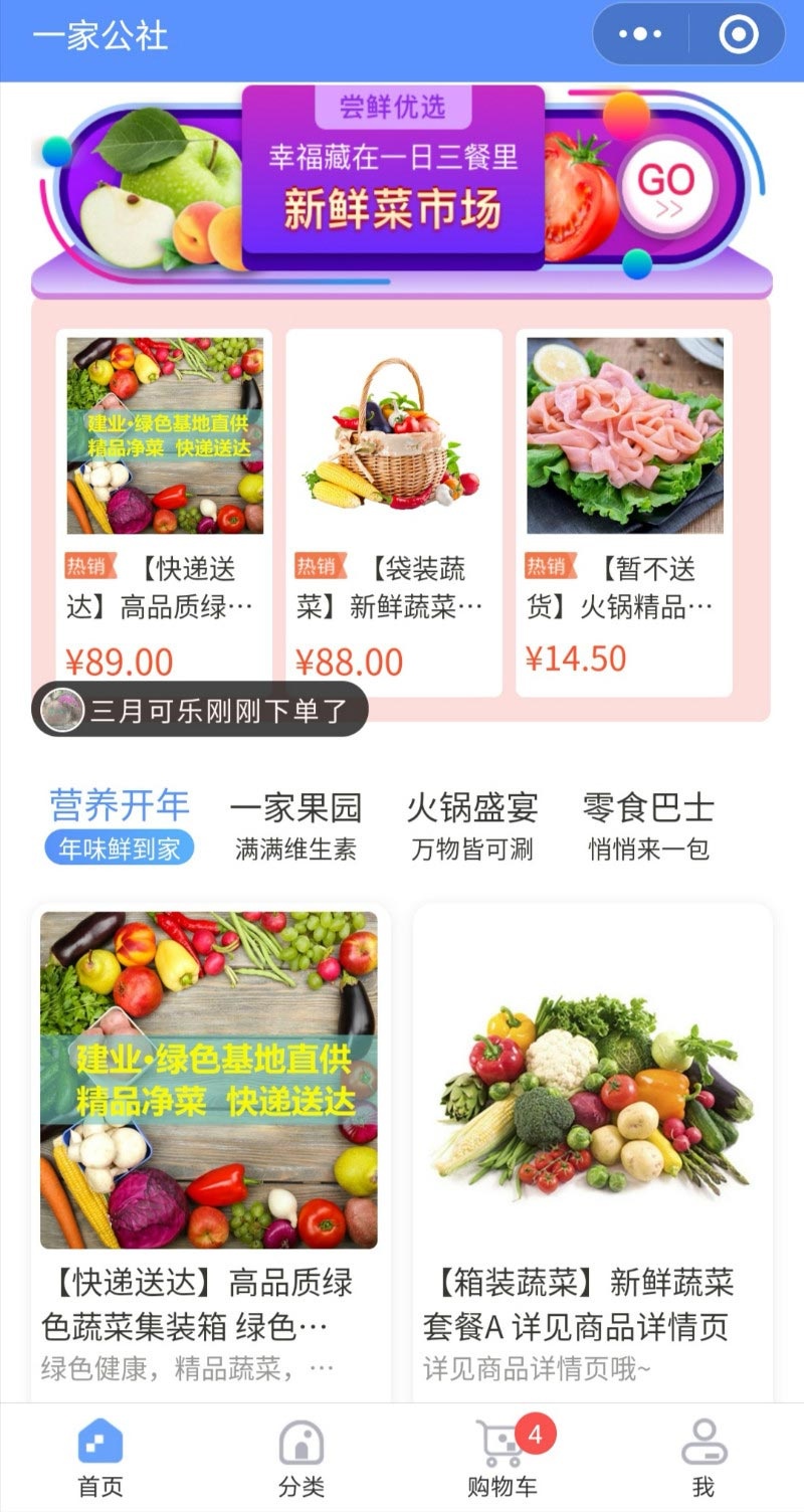 只有蔬菜,生活怎叫有滋味?建業(yè)物業(yè)和一家公社強(qiáng)強(qiáng)聯(lián)合,利用“建業(yè)+”平臺(tái)聯(lián)盟優(yōu)勢(shì),連夜聯(lián)系品牌生活服務(wù)商,克服物流、配送等困難,全面上線新鮮水果、牛奶零食、火鍋速食等品類20余種供業(yè)主選購(gòu)。