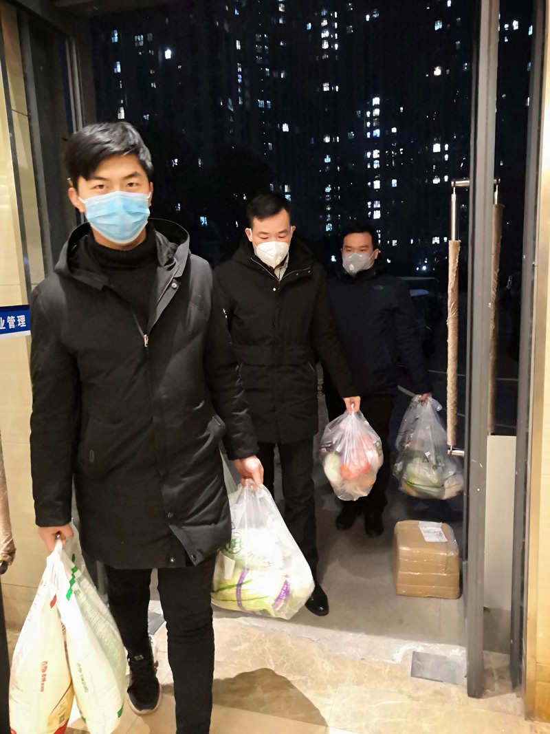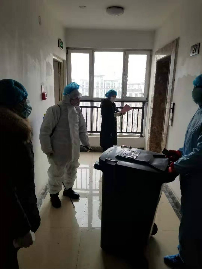 最后,王瑛經(jīng)理帶領(lǐng)病毒消殺經(jīng)驗豐富的環(huán)境主管王華和平時堅持健身的儲備經(jīng)理位仁義,在買不到防護服的情況下,披上雨衣、穿上鞋套就前往“疫情重災(zāi)區(qū)”,逐戶排查隔離區(qū)業(yè)主居住情況。