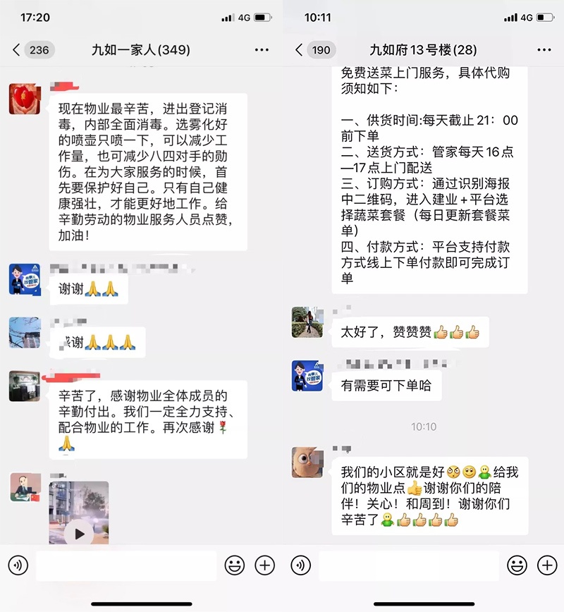 “物業(yè)辛苦了,注意安全,大家管理好自己,少給物業(yè)添麻煩?!?br />   “非常感謝建業(yè)物業(yè)的工作人員,在非常時(shí)期是建業(yè)物業(yè)的工作人員一直守護(hù)著我們,待春暖花開時(shí),我們?cè)俟操p之。”