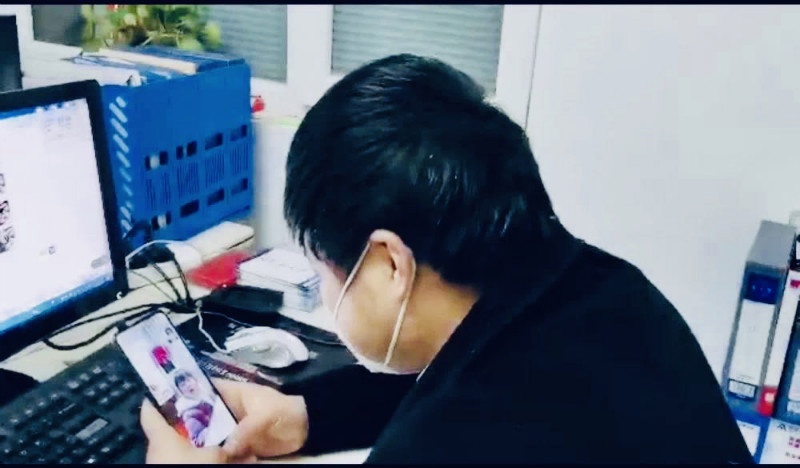 建業(yè)物業(yè)南陽區(qū)域宛城片區(qū)的禮兵副隊(duì)長李鵬飛和女兒視頻結(jié)束后,繼續(xù)開始他的工作。