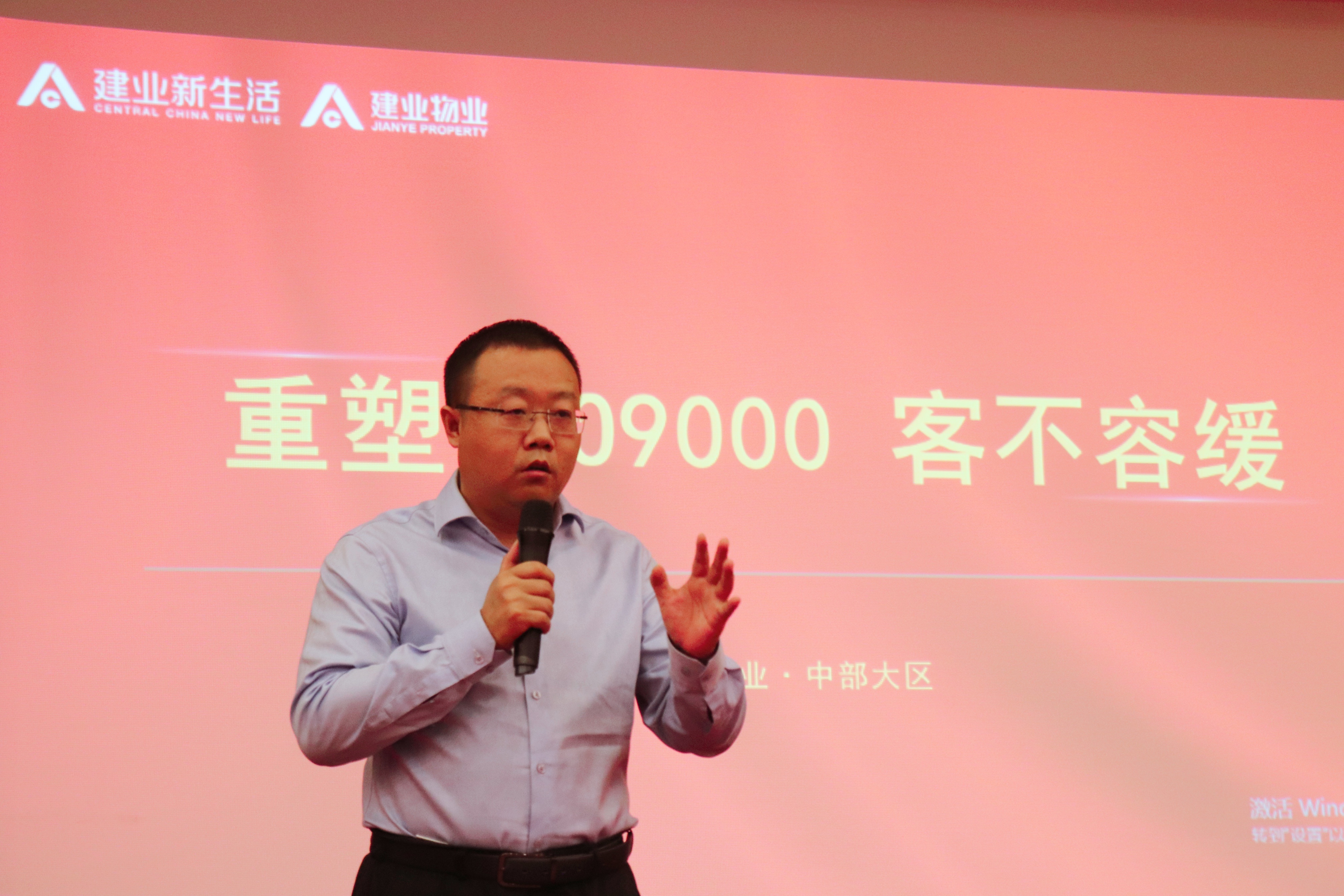 建業(yè)物業(yè)中部大區(qū)副總經理陳沖作行動宣講