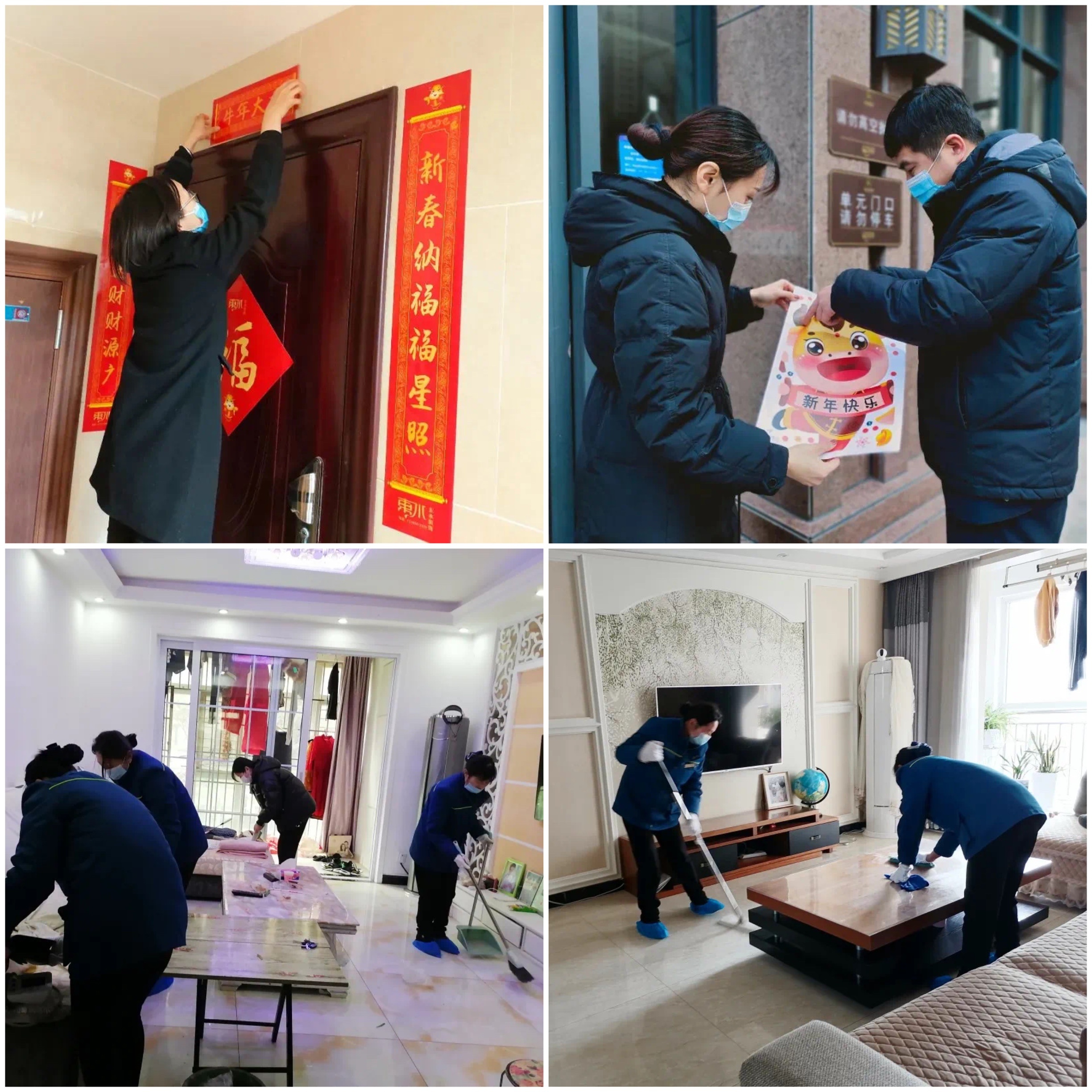 這個(gè)新年,有許多業(yè)主選擇了在工作地過(guò)年。對(duì)于沒(méi)有回家的業(yè)主,建業(yè)物業(yè)組織了入戶清潔服務(wù),從張貼春聯(lián)到清潔室內(nèi)的角角落落,讓業(yè)主不能回家也能除塵迎新,納足一年的福氣!