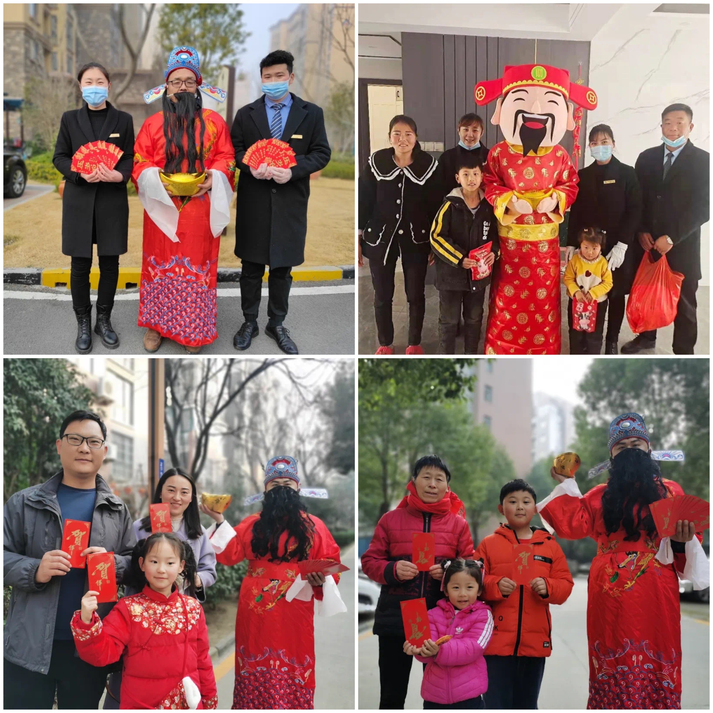 財(cái)神迎到家,日子越發(fā)達(dá)。大年初五這天,建業(yè)物業(yè)的工作人員扮起了財(cái)神,并準(zhǔn)備了小紅包、糖果、零食等禮物,為業(yè)主送福氣。不少業(yè)主看到后,紛紛與物業(yè)人扮演的財(cái)神合影,想要沾點(diǎn)喜氣,整個(gè)小區(qū)都充盈著歡樂(lè)的笑聲。