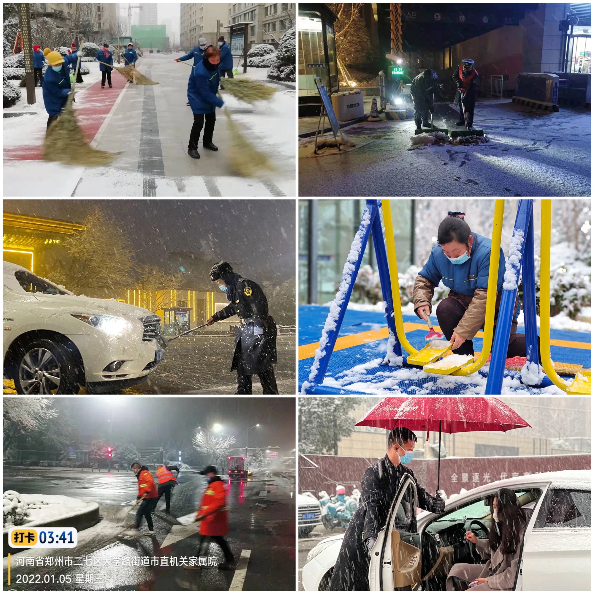 除雪工作不僅在建業(yè)物業(yè)各小區(qū)上演,在鄭州二七片區(qū)的街道上,建業(yè)物業(yè)環(huán)衛(wèi)工人連續(xù)奮戰(zhàn),積極清掃路面積雪。