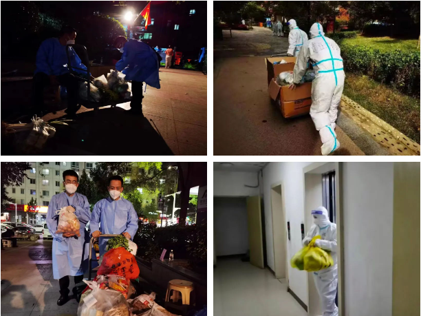 因為知道今天物業(yè)開始給我們送菜,早上起來心里滿是快樂,想著下午就有菜吃了,午餐也比前兩天豐盛些。從窗口向南門望去,門口擺滿了一大包一大包的物資,物業(yè)人員和大白們有的彎著腰在分揀,有的在把物資提到推車上,然后再冒著危險把菜送到一家家門口。夜幕降臨,隱隱聽到了鄰居們家里的電視聲,孩子們的嬉笑聲,我再次踱到窗前向南門看去:昏黃的路燈下,還有物業(yè)人員和大白借著燈光在忙著分揀,裝車,送貨。想著安心待在家里的我們,看著夜幕下為我們忙碌的工作人員,作家蘇心的那兩句話涌上心頭:“哪有什么歲月靜好,不過是有人替你負重前行?!?/span>
