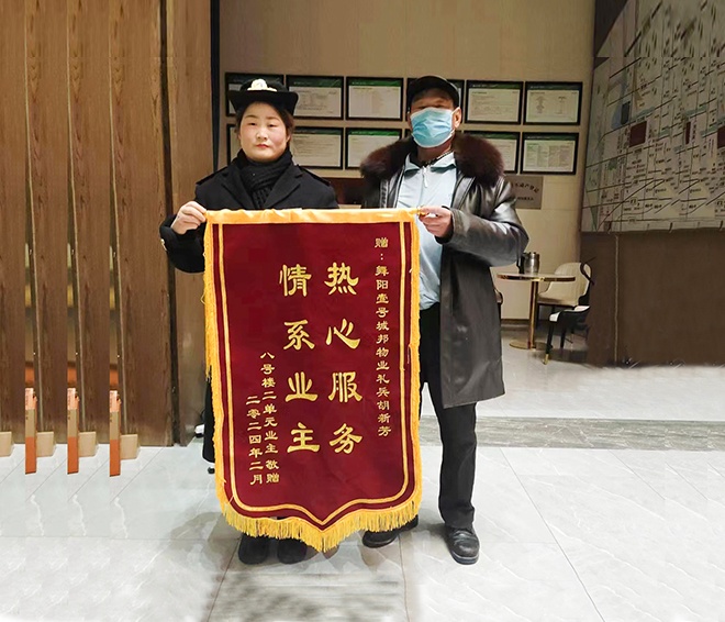 冬天漸漸遠去,在寒冷的季節(jié)里,建業(yè)物業(yè)人像熊熊燃燒的篝火不斷溫暖著業(yè)主。在日復一日的工作中,無數(shù)小事磨礪出建業(yè)物業(yè)人的良好品格,這些品格不僅體現(xiàn)在對待業(yè)主的耐心和細致,更蘊含在對工作的熱愛與執(zhí)著,以及面對挑戰(zhàn)時的堅韌與勇氣。 2月份,建業(yè)物業(yè)在管園區(qū)涌現(xiàn)出好人好事765件,其中收到錦旗158面、感謝信69封,其他致電表揚等538次。 01 裝修小幫手 近期,漯河舞陽·建業(yè)壹號城邦業(yè)主王先生新房裝修工作剛進入尾聲階段,他便立即給禮兵胡新芳送來了一邊錦旗。王先生表示,在裝修期間,胡新芳不僅幫忙裝卸裝修物料和家具,在自己因事來不了小區(qū)時還會緊盯裝修進展,給自己省了不少事。在室內(nèi)墻面粉刷階段,因為連日天氣不好,墻面無法及時干燥,需要用電熱扇烘烤。胡新芳便每兩個