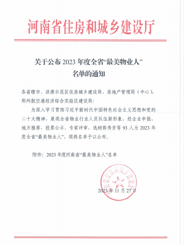 近日,建業(yè)物業(yè)及子公司林州六合物業(yè)、建業(yè)天明物業(yè)連續(xù)榮獲多項集體榮譽及個人榮譽,充分體現(xiàn)了市場、行業(yè)與業(yè)主對建業(yè)物業(yè)的認可與肯定。 2023年,建業(yè)物業(yè)始終將客戶需求放在首位,扎實做好基礎(chǔ)服務(wù),持續(xù)完善標準化體系建設(shè),創(chuàng)新開展多元服務(wù),持續(xù)聚焦業(yè)主需求。圍繞安保、保潔、綠化、維修等物業(yè)基礎(chǔ)服務(wù)及管家幸福服務(wù),打造專業(yè)化管理及執(zhí)行團隊,確保物業(yè)服務(wù)品質(zhì)及客戶滿意度穩(wěn)步提升,依托“建業(yè)+”幸福生態(tài)系統(tǒng),為業(yè)主提供時間、地域、功能無盲點的服務(wù),打造“好看、好玩、好用”的中原本地化生活平臺。 未來,建業(yè)物業(yè)將繼續(xù)堅持服務(wù)至上的理念,不斷提升管理水平和服務(wù)質(zhì)量,為廣大業(yè)主提供更優(yōu)質(zhì)、便捷的物業(yè)服務(wù),在物業(yè)管理領(lǐng)域中不斷深入發(fā)展,為實現(xiàn)業(yè)主的美好生活持續(xù)奮斗。