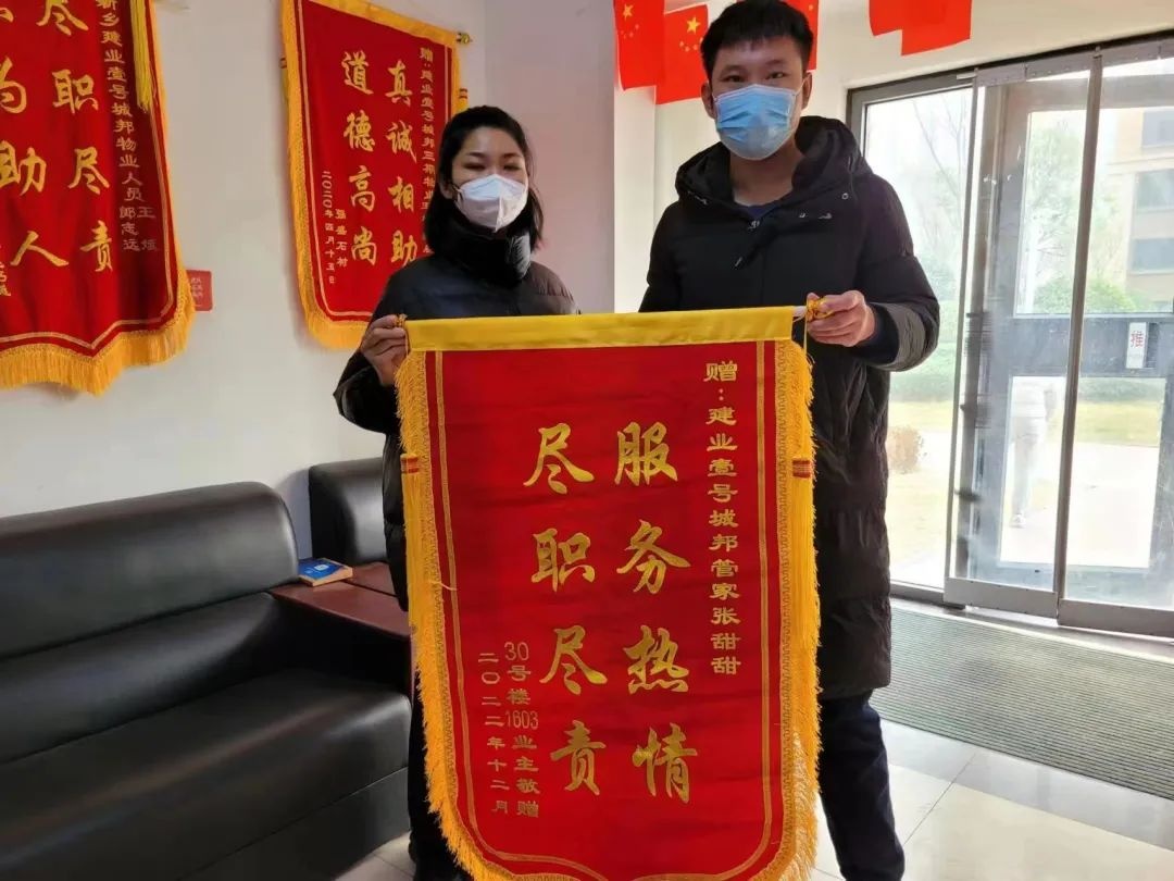 “鼎力相助,有求必應” “排憂解難,情系業(yè)主” “服務熱情,盡職盡責” …… 12月8日,剛剛解封不久的新鄉(xiāng)·建業(yè)壹號城邦物業(yè)服務中心內(nèi),業(yè)主代表們將21面鮮紅的錦旗送給了貼心管家張?zhí)鹛?,對她在疫情封控期間的無私奉獻及日常服務中的盡職盡責表達感謝。 是她的負責,保障了我們特殊時期的安全 在前段時間的疫情管控中,張?zhí)鹛鹚撠煹臉菞潈?nèi)出現(xiàn)了確診病例,按照當時的政策,需要對整個單元進行封控,張?zhí)鹛鸨愠袚鹫麄€樓層的消殺、物資配送等工作。在配送物資時,張?zhí)鹛鸢l(fā)現(xiàn)有的業(yè)主并沒有按照防疫要求足不出戶,便主動勸導業(yè)主進行嚴格的居家隔離,避免病毒進一步擴散。 與此同時,張?zhí)鹛疬€時刻關(guān)注著被感染業(yè)主的健康情況,在被感染